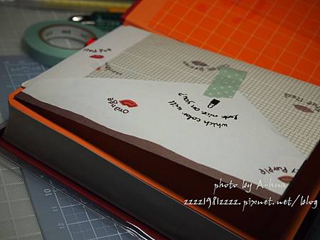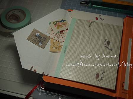 (阿花是黏在手帳最後一頁,若是黏在首頁,信封要翻面喔!)