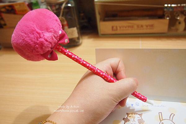 粉紅水玉毛球筆~天啊~~整個大中我的心啊!!!真的可愛到爆炸啊...